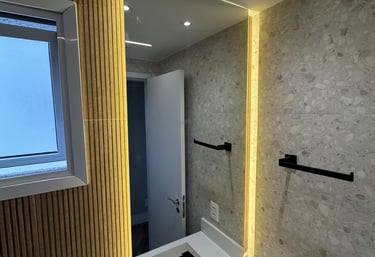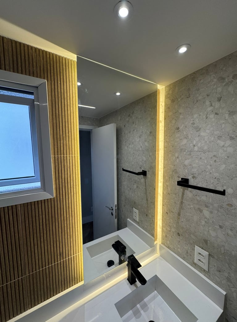 Espelhos sob medida com acabamento impecável para ampliar e iluminar seus ambientes.